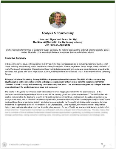 This year's National Gardening Survey (NGS) has important value-added content. The 2022 NGS incorporates key psychographic and behavioral questions and responses previously only available from the supplemental "What Gardener's Think" survey, which was only conducted every few years. This additional data gives us a deeper and fuller understanding of the gardening marketplace and consumer. The results of this year's NGS help us resolve the central question nagging the industry for the past two years – is the pandemic-fueled boom in gardening sustainable and will the industry growth and gains be maintained? Jim Feinson (Strategic Advisor and former CEO of Gardener's Supply Company) discusses this question in his commentary, "The New (Ab)Normal in the Gardening Industry."