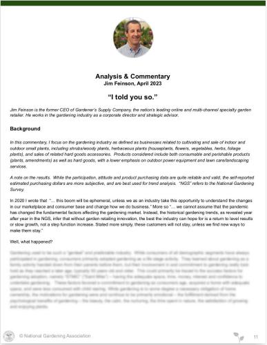 - Jim Feinson, former CEO of Gardener's Supply Company, returns this year with another insightful and thought provoking commentary.