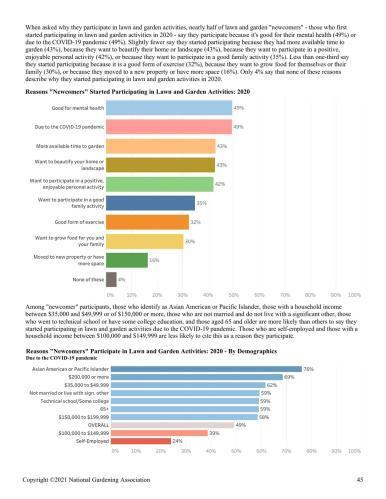 "Gardeners participated higher than the historical average in all of the 2020 lawn and gardening activities and 66% say they participated in a new gardening activity in 2020. They're interested, passionate, and potentially shifting the gardening world."